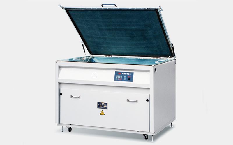 تتميز ماكينة تعرض الشاشة الحريرية بالفراغ المصنوعة بواسطة شركة Jinbao بوجود مصابيح تشتغل بعناصر اليود والغاليوم حيث تُولد هذه الماكينة ضوء قوي بالأشعة فوق البنفسجية والأشعة فوق البنفسجية القريبة من أجل نسخ الصور والنصوص إلى لوحة الطباعة الحريرية والبوليمر الضوئي وألواح PC.